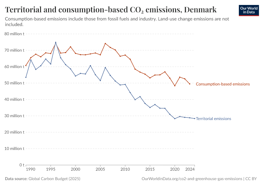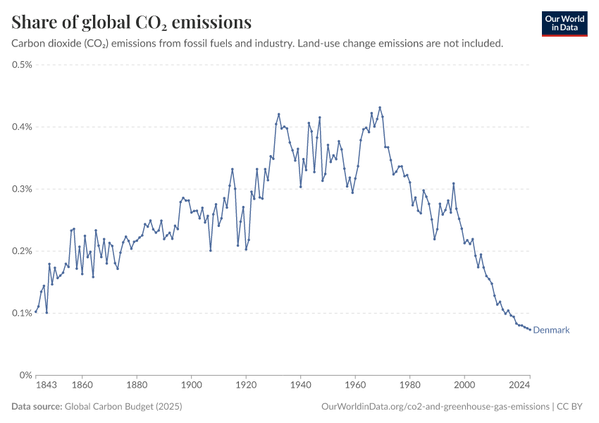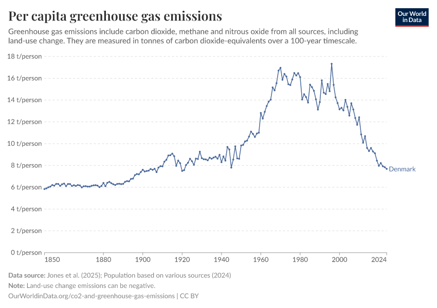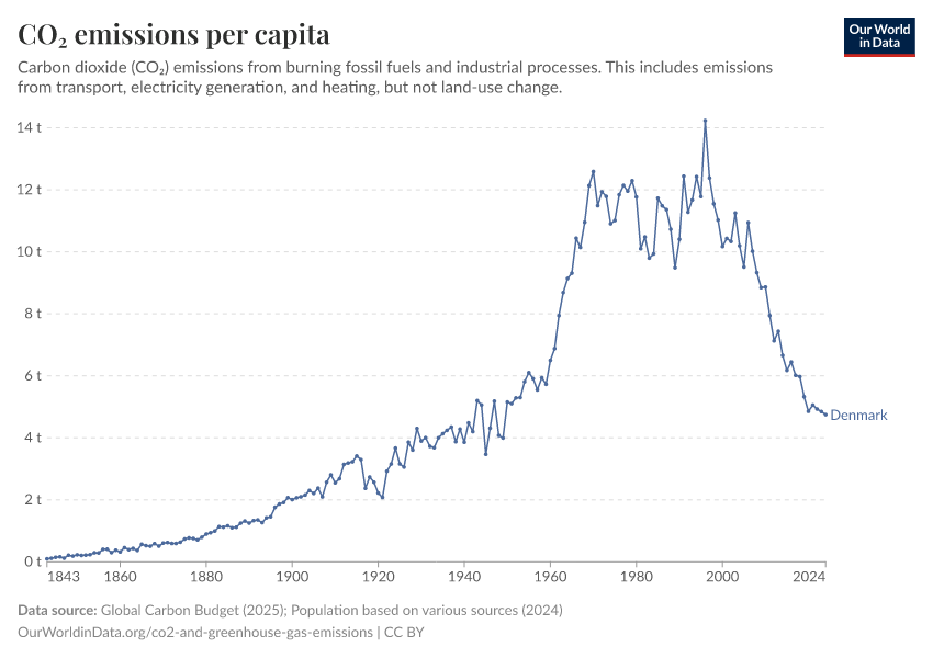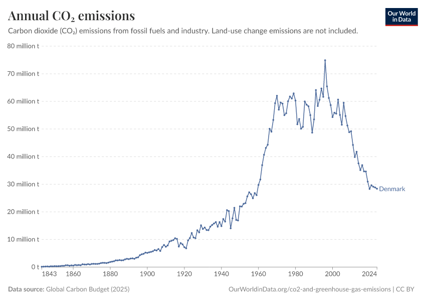 Hannah Ritchie (2025) - “CO₂ and Greenhouse Gas Emissions” Published online at OurWorldinData.org. Retrieved from: 'https://ourworldindata.org/profile/co2/denmark' [Online Resource]BibTeX citation
