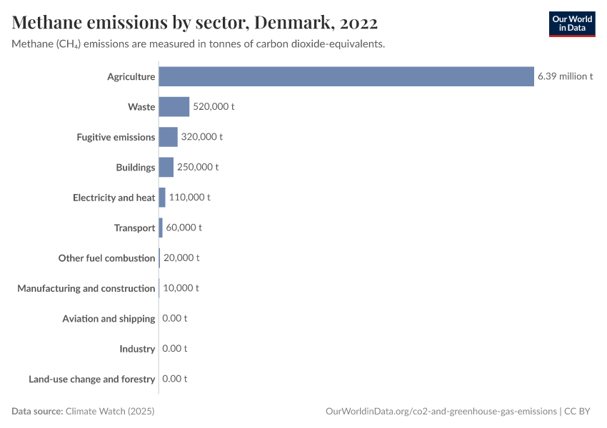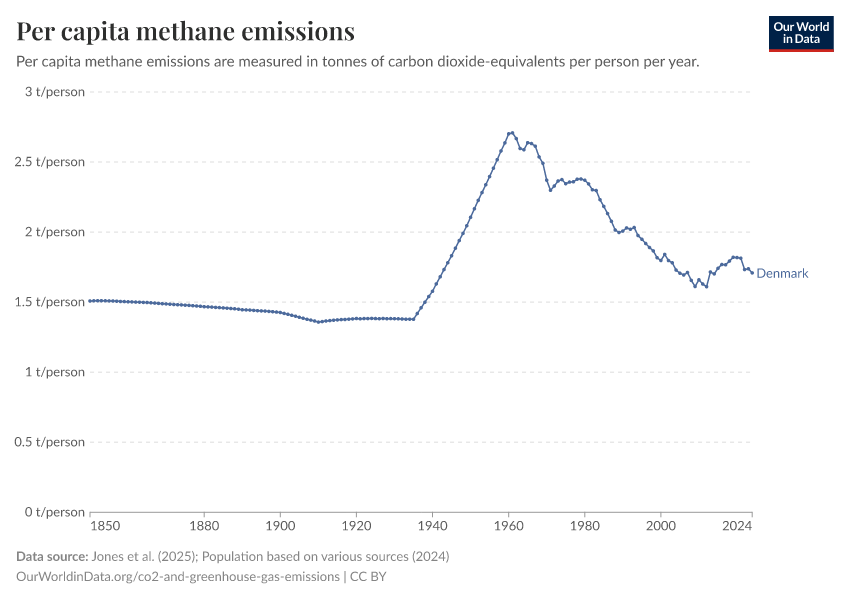 Methane: how much does the average person in Denmark emit? Where do emissions come from?