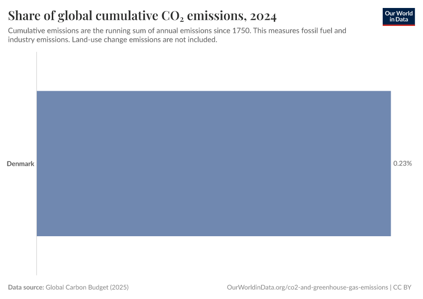 What share of global historical CO₂ has Denmark emitted?
