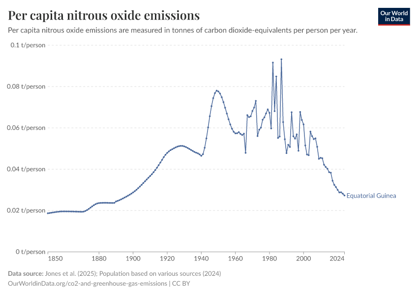 Nitrous oxide: how much does the average person in Equatorial Guinea emit? Where do emissions come from?