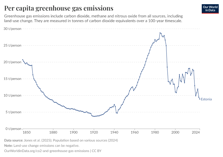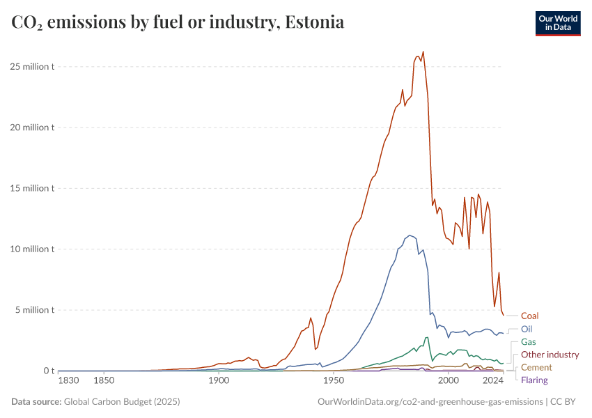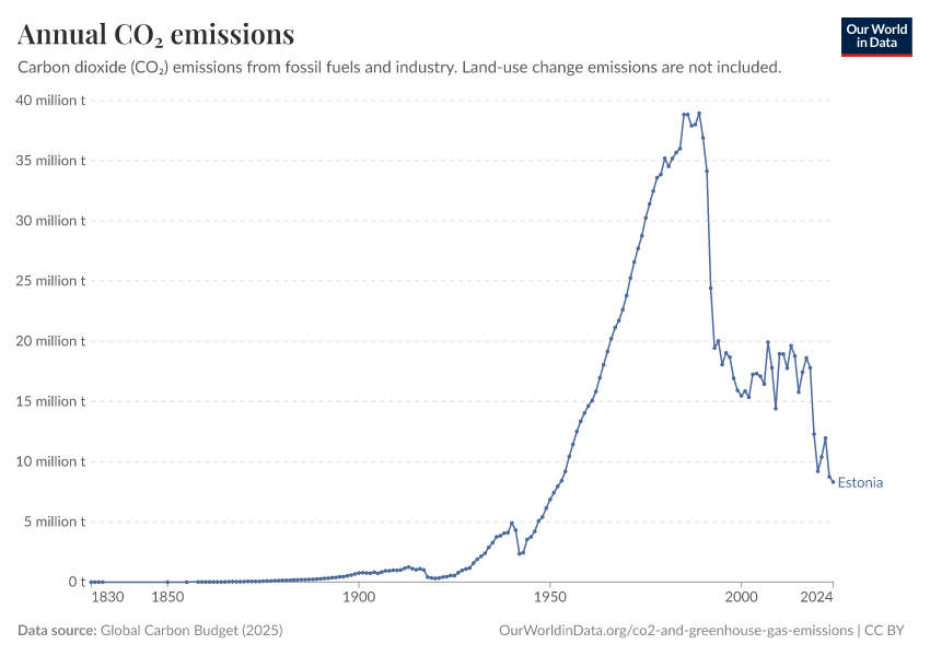 Hannah Ritchie (2025) - “CO₂ and Greenhouse Gas Emissions” Published online at OurWorldinData.org. Retrieved from: 'https://ourworldindata.org/profile/co2/estonia' [Online Resource]BibTeX citation