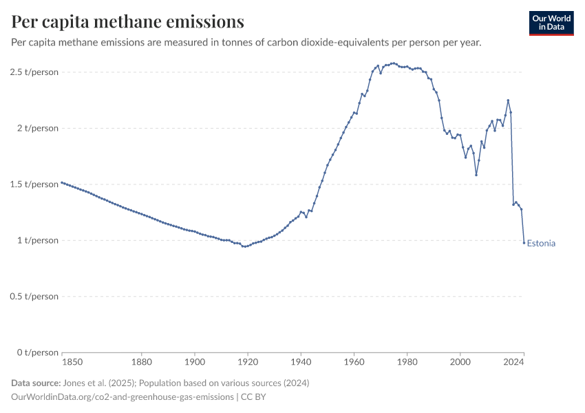 Methane: how much does the average person in Estonia emit? Where do emissions come from?