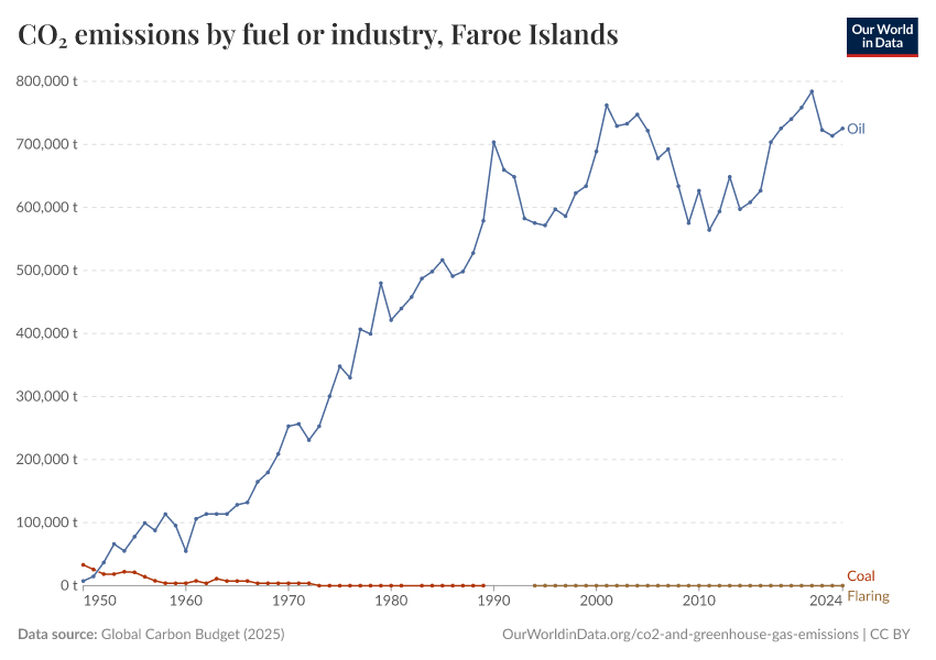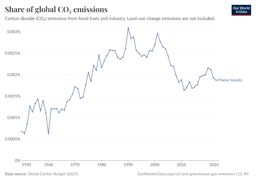 Hannah Ritchie (2025) - “CO₂ and Greenhouse Gas Emissions” Published online at OurWorldinData.org. Retrieved from: 'https://ourworldindata.org/profile/co2/faroe-islands' [Online Resource]BibTeX citation