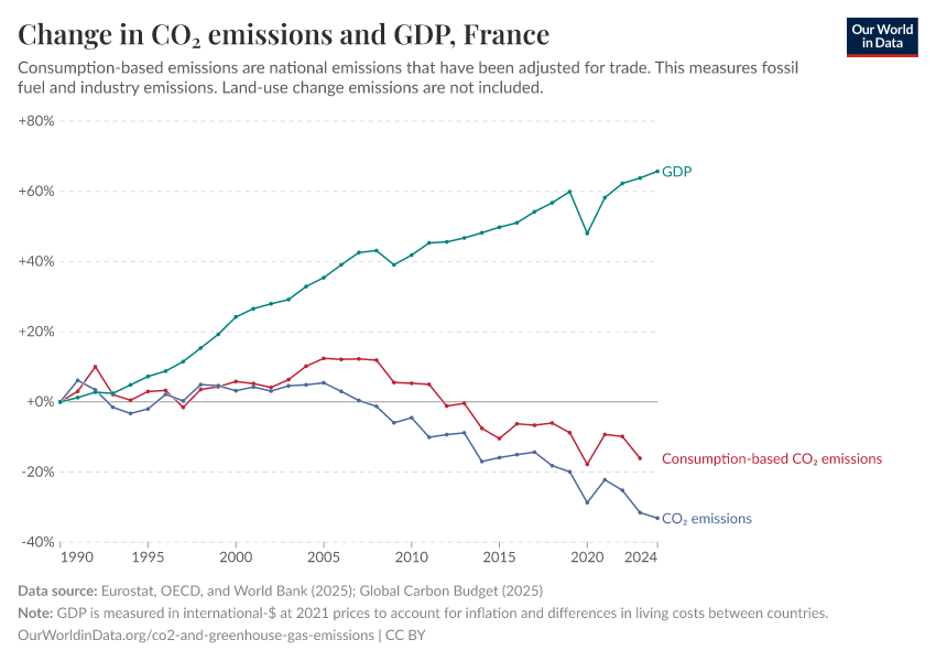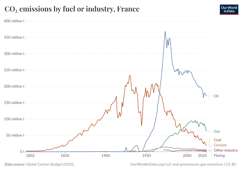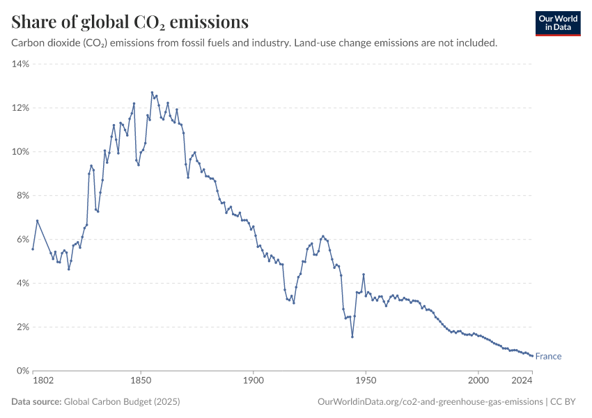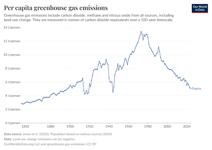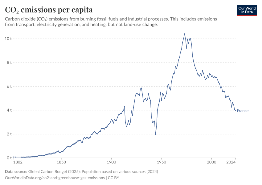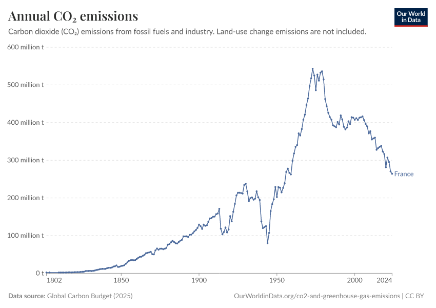 Hannah Ritchie (2025) - “CO₂ and Greenhouse Gas Emissions” Published online at OurWorldinData.org. Retrieved from: 'https://ourworldindata.org/profile/co2/france' [Online Resource]BibTeX citation