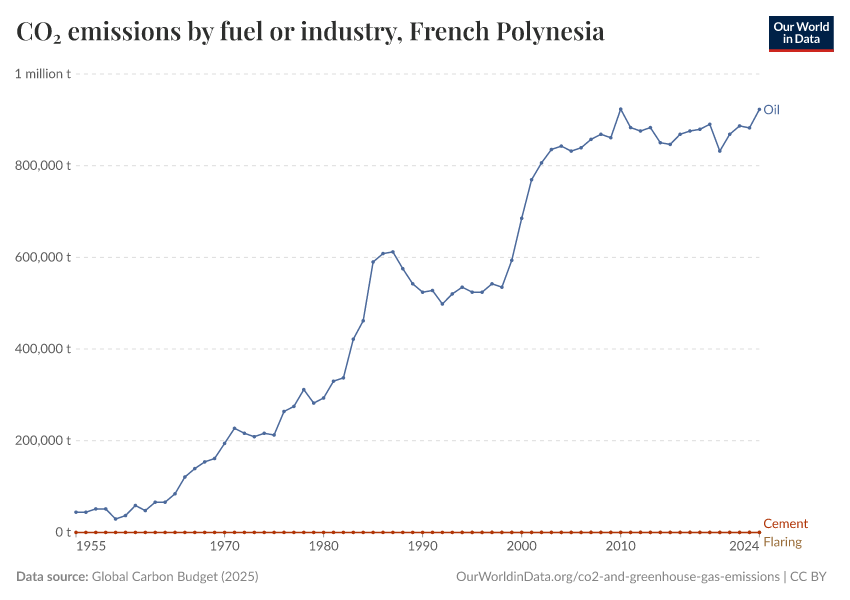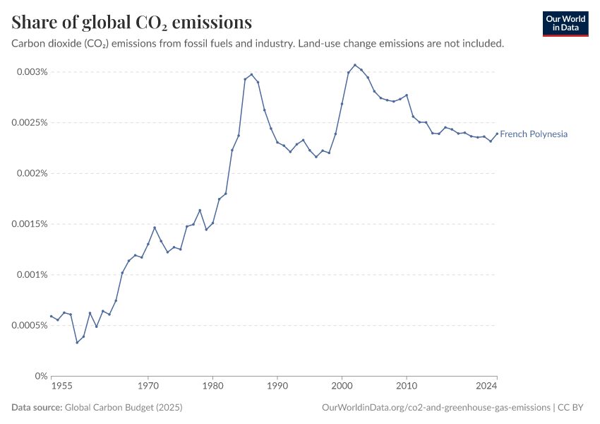 Hannah Ritchie (2025) - “CO₂ and Greenhouse Gas Emissions” Published online at OurWorldinData.org. Retrieved from: 'https://ourworldindata.org/profile/co2/french-polynesia' [Online Resource]BibTeX citation