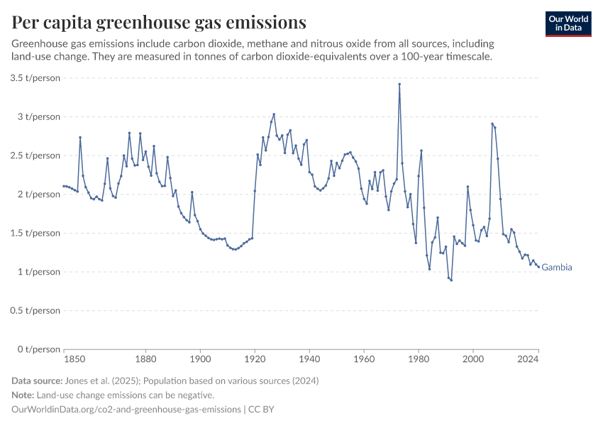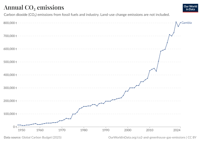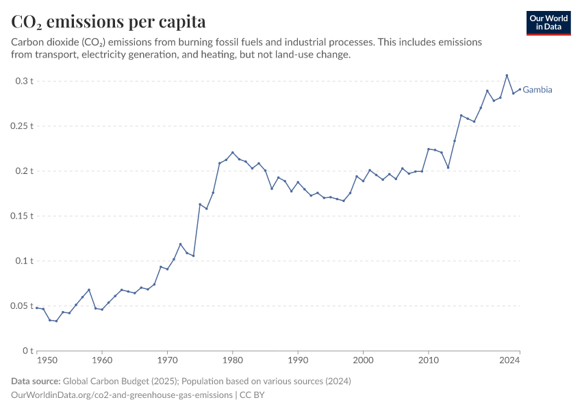 Hannah Ritchie (2025) - “CO₂ and Greenhouse Gas Emissions” Published online at OurWorldinData.org. Retrieved from: 'https://ourworldindata.org/profile/co2/gambia' [Online Resource]BibTeX citation