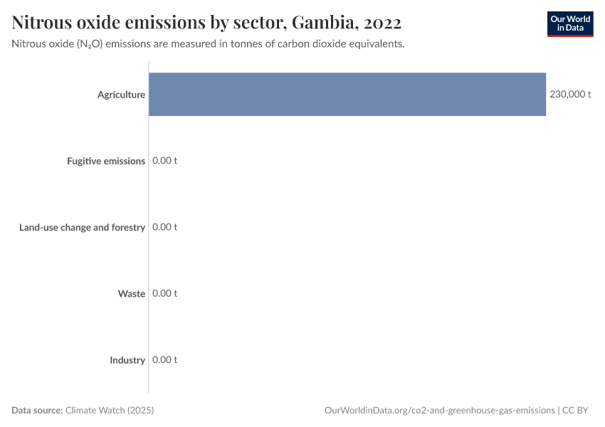 Nitrous oxide: how much does the average person in the Gambia emit? Where do emissions come from?