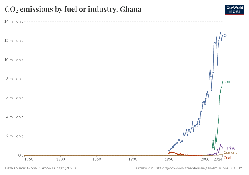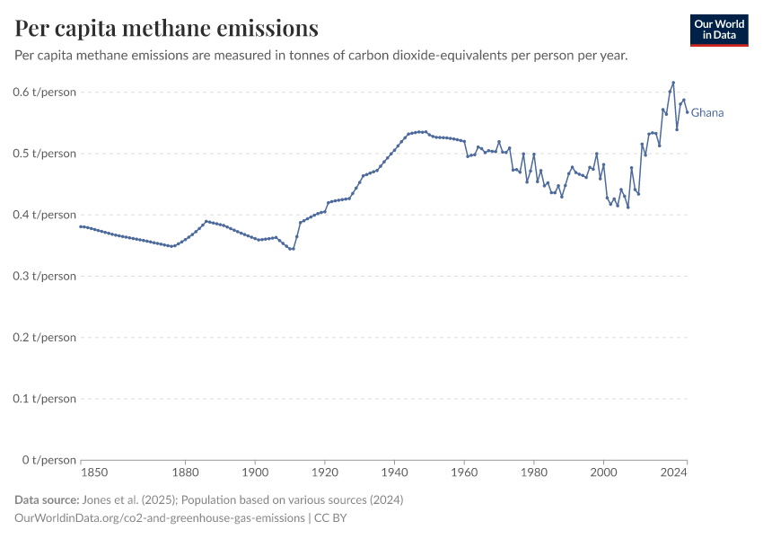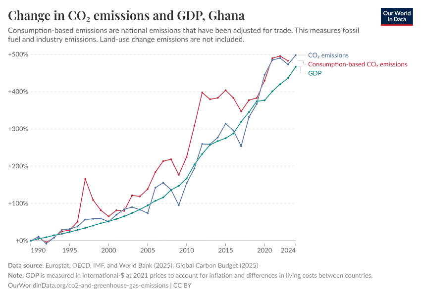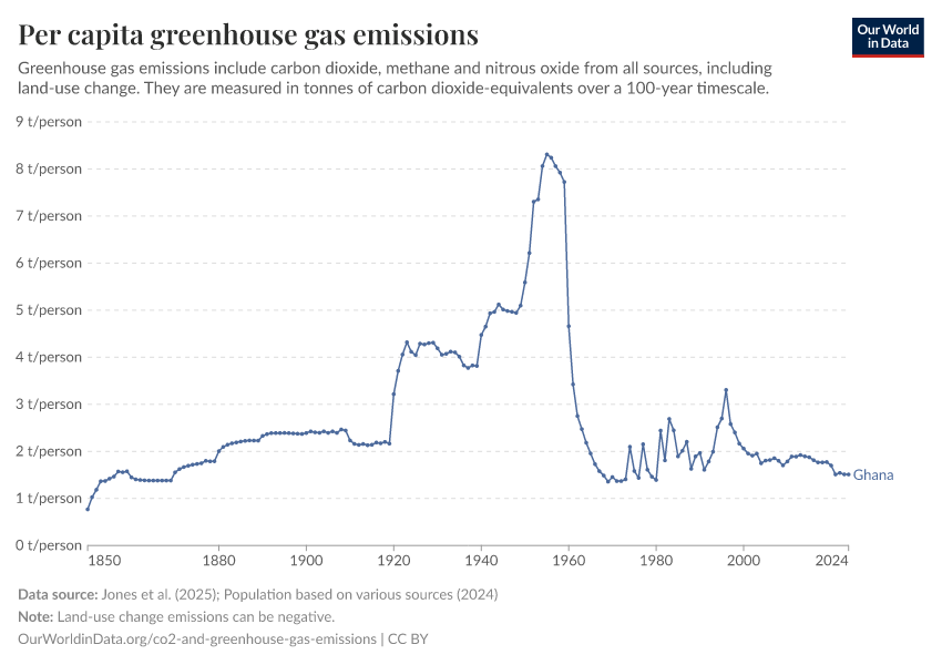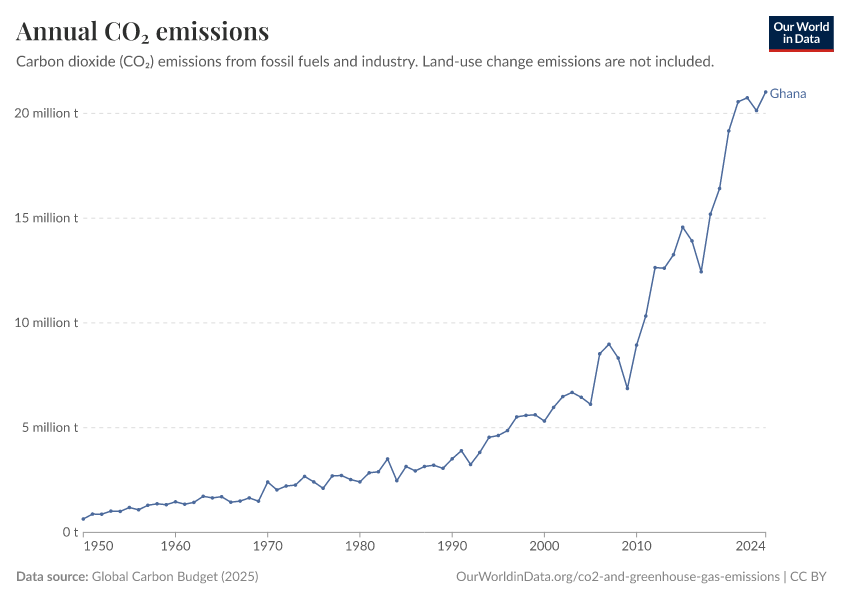 Hannah Ritchie (2025) - “CO₂ and Greenhouse Gas Emissions” Published online at OurWorldinData.org. Retrieved from: 'https://ourworldindata.org/profile/co2/ghana' [Online Resource]BibTeX citation