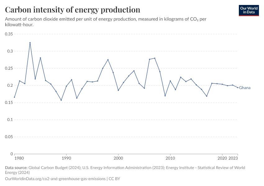 Carbon intensity: how much carbon does Ghana emit per unit of energy?