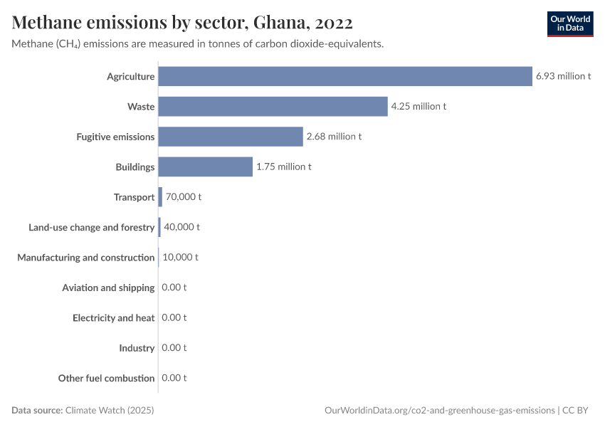 Methane: how much does the average person in Ghana emit? Where do emissions come from?
