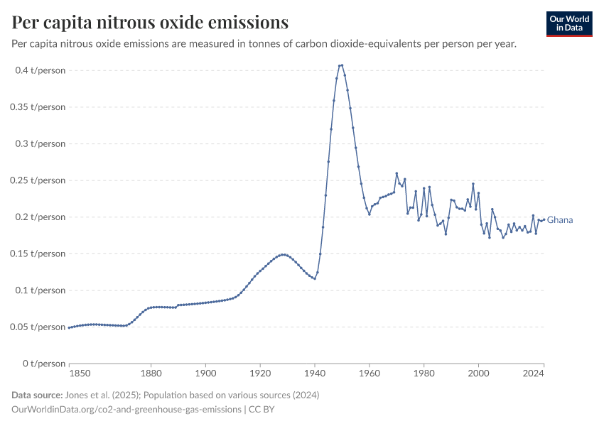 Nitrous oxide: how much does the average person in Ghana emit? Where do emissions come from?