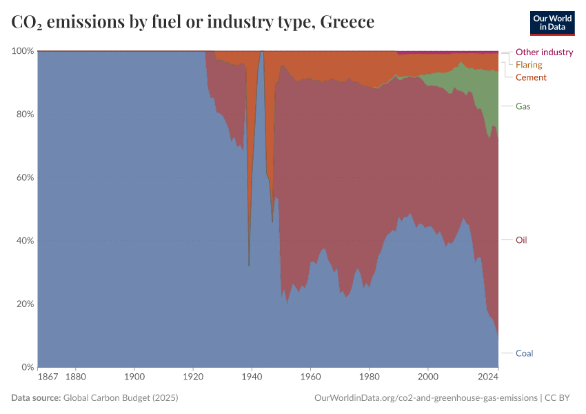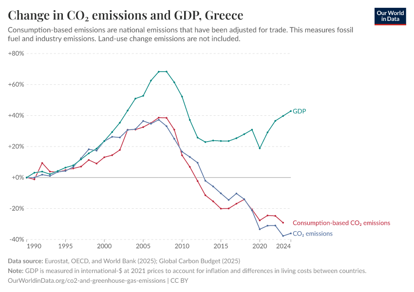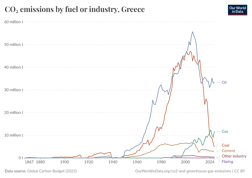 Hannah Ritchie (2025) - “CO₂ and Greenhouse Gas Emissions” Published online at OurWorldinData.org. Retrieved from: 'https://ourworldindata.org/profile/co2/greece' [Online Resource]BibTeX citation