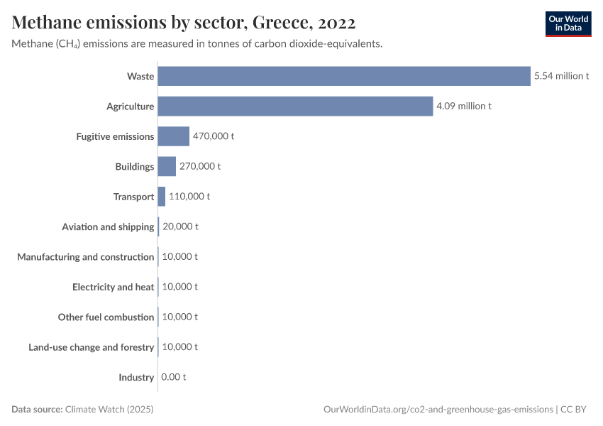 Methane: how much does the average person in Greece emit? Where do emissions come from?