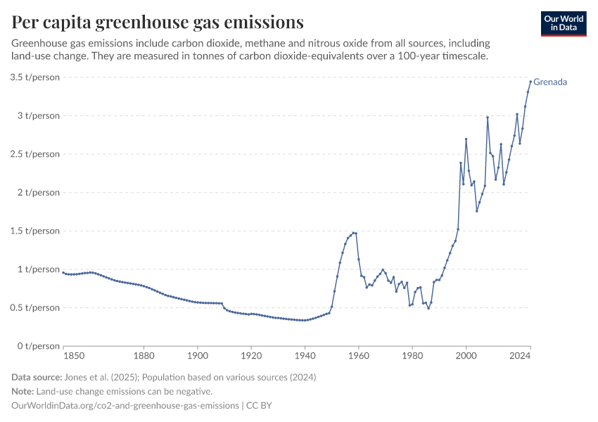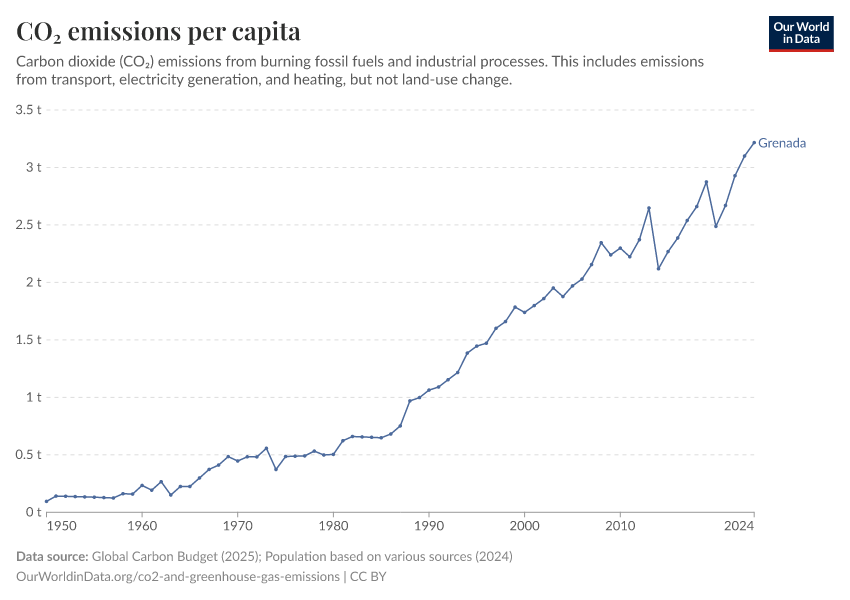 Hannah Ritchie (2025) - “CO₂ and Greenhouse Gas Emissions” Published online at OurWorldinData.org. Retrieved from: 'https://ourworldindata.org/profile/co2/grenada' [Online Resource]BibTeX citation