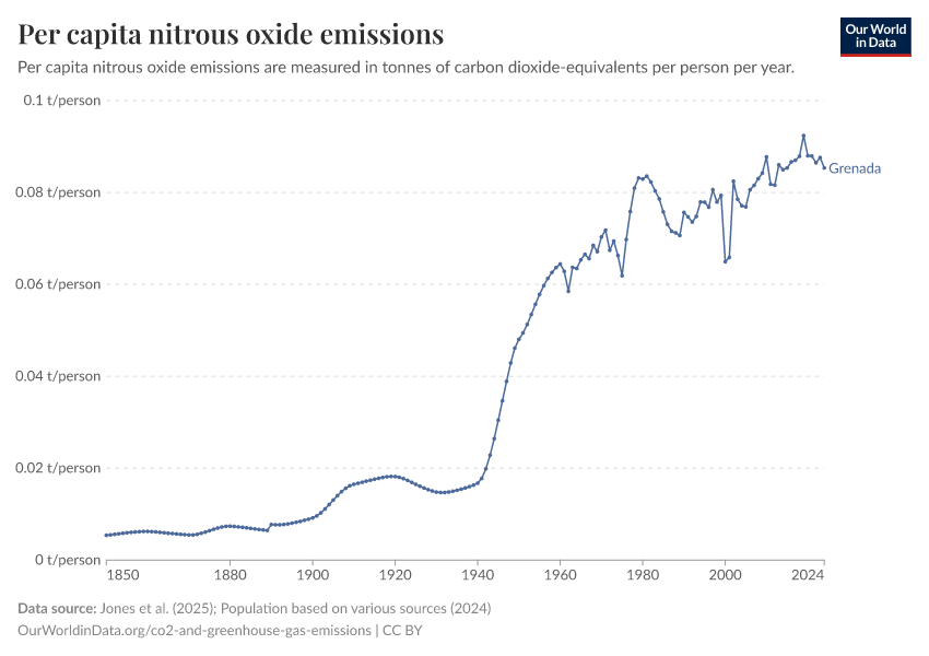 Nitrous oxide: how much does the average person in Grenada emit? Where do emissions come from?