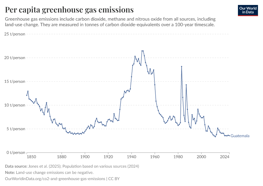 Hannah Ritchie (2025) - “CO₂ and Greenhouse Gas Emissions” Published online at OurWorldinData.org. Retrieved from: 'https://ourworldindata.org/profile/co2/guatemala' [Online Resource]BibTeX citation