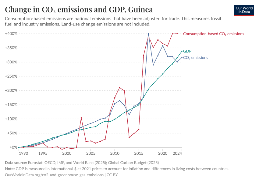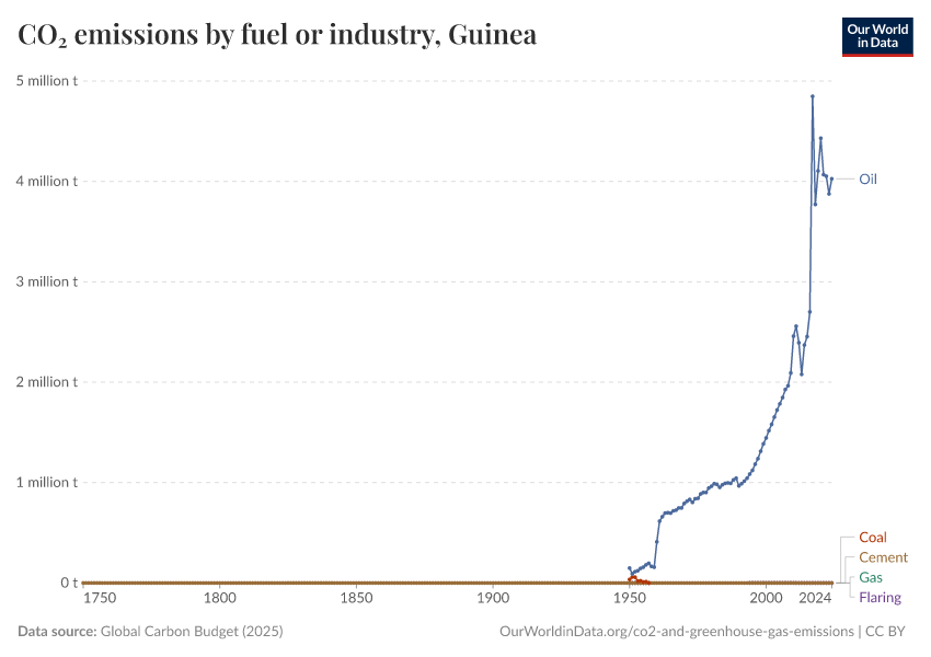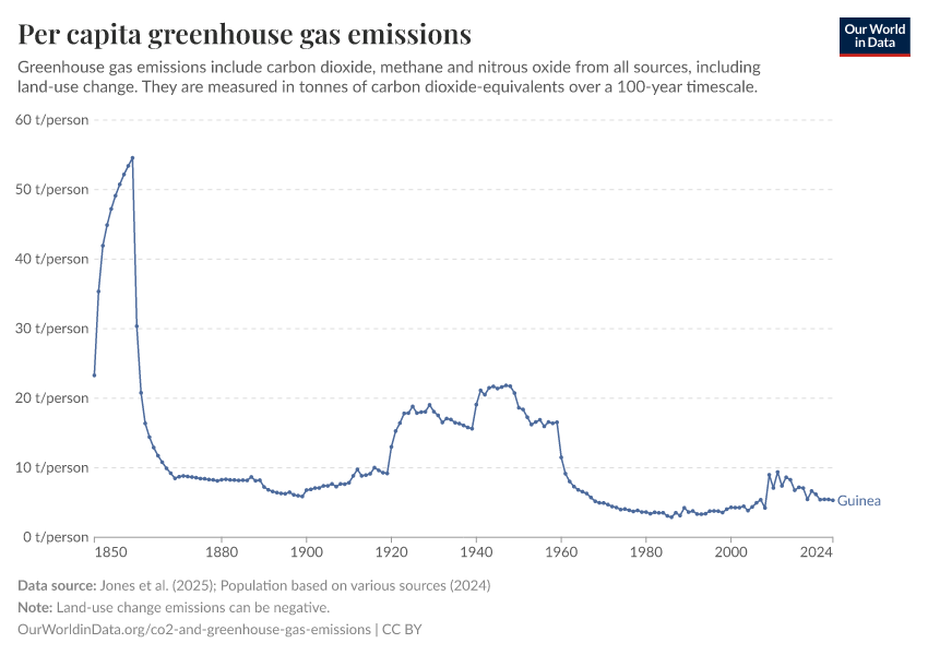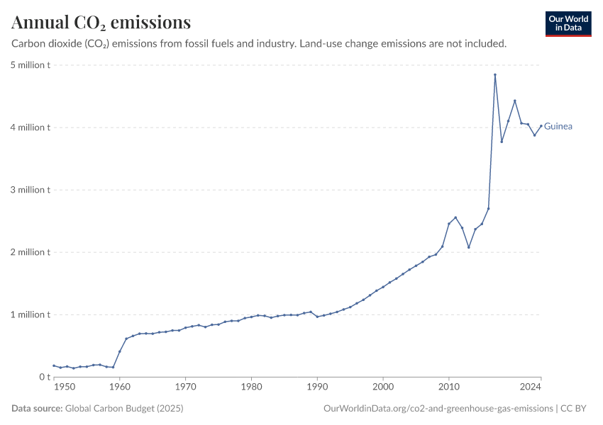 Hannah Ritchie (2025) - “CO₂ and Greenhouse Gas Emissions” Published online at OurWorldinData.org. Retrieved from: 'https://ourworldindata.org/profile/co2/guinea' [Online Resource]BibTeX citation