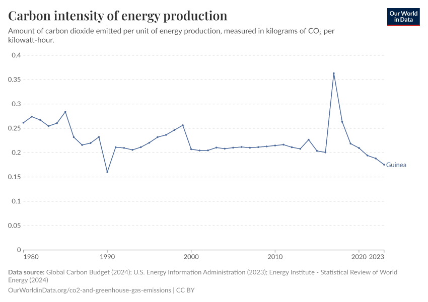 Carbon intensity: how much carbon does Guinea emit per unit of energy?