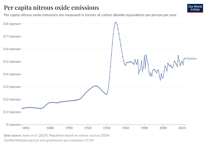 Nitrous oxide: how much does the average person in Guinea emit? Where do emissions come from?