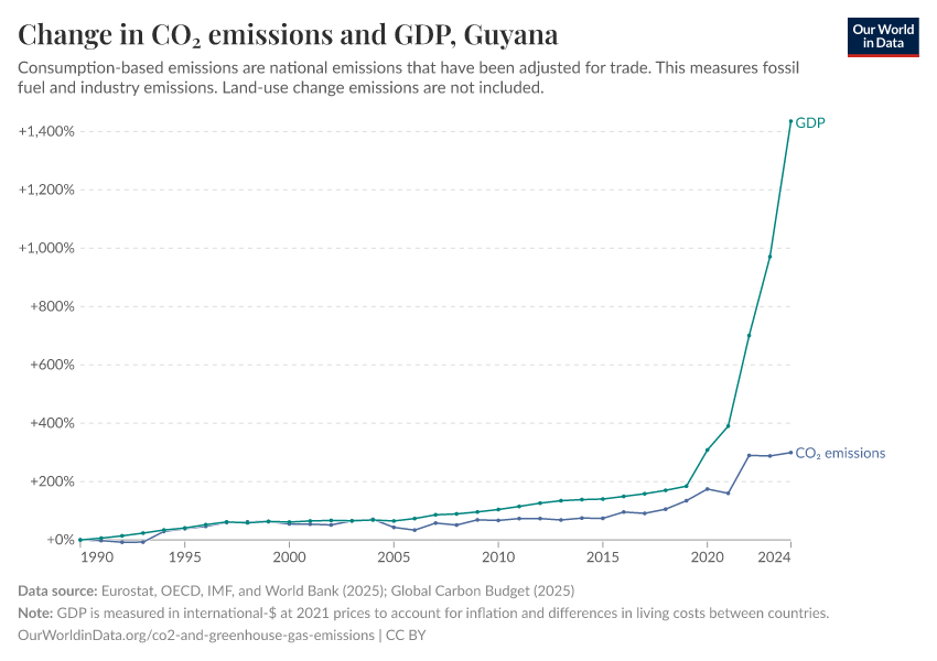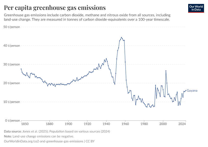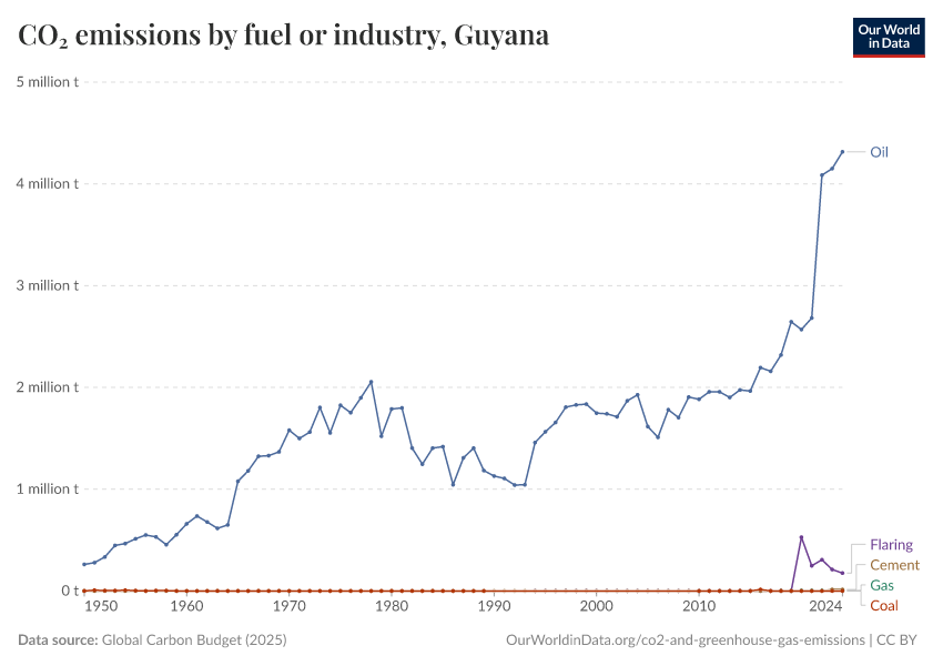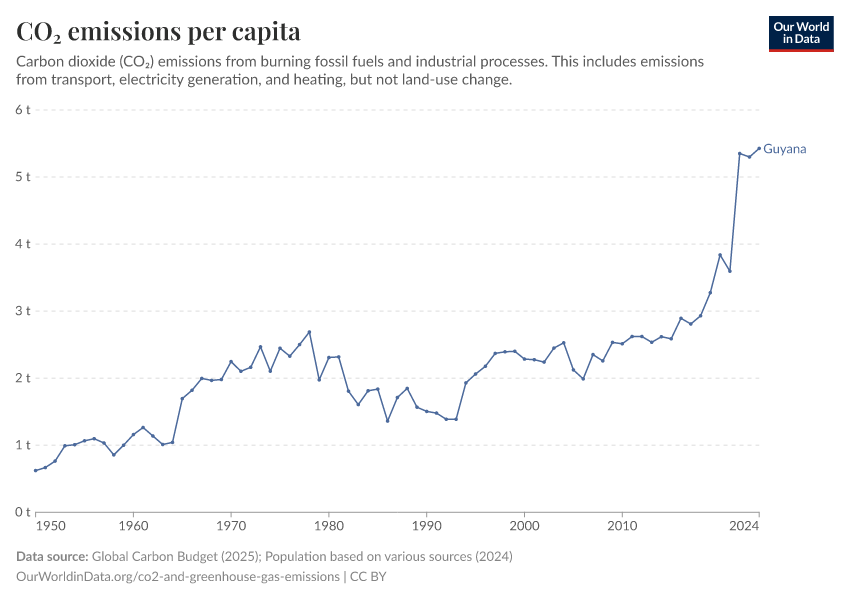 Hannah Ritchie (2025) - “CO₂ and Greenhouse Gas Emissions” Published online at OurWorldinData.org. Retrieved from: 'https://ourworldindata.org/profile/co2/guyana' [Online Resource]BibTeX citation