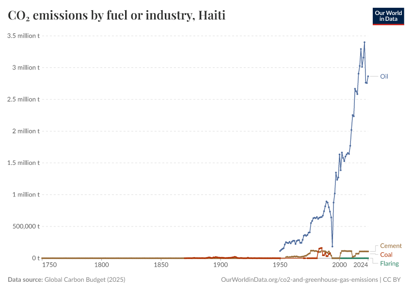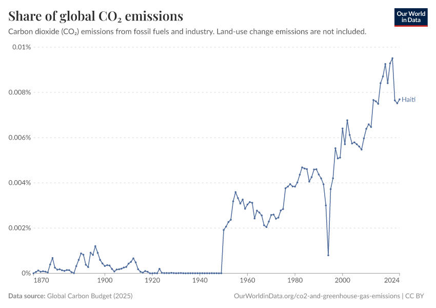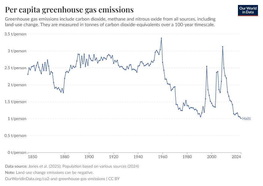 Hannah Ritchie (2025) - “CO₂ and Greenhouse Gas Emissions” Published online at OurWorldinData.org. Retrieved from: 'https://ourworldindata.org/profile/co2/haiti' [Online Resource]BibTeX citation