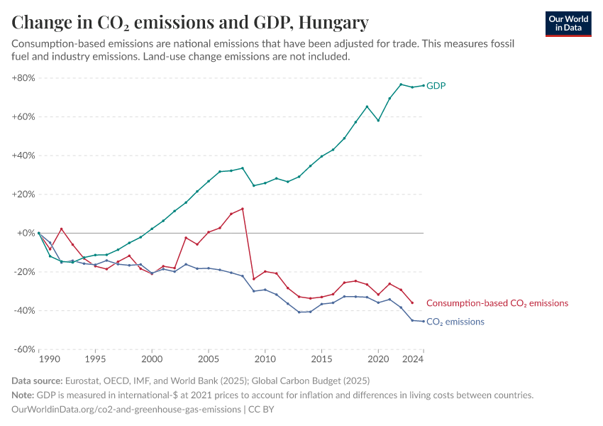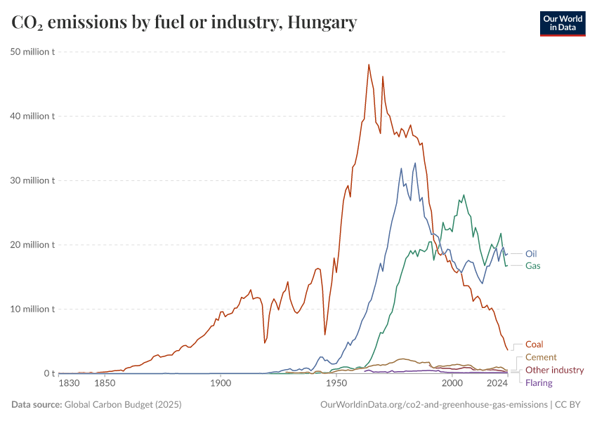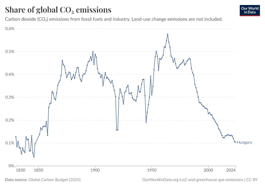 Hannah Ritchie (2025) - “CO₂ and Greenhouse Gas Emissions” Published online at OurWorldinData.org. Retrieved from: 'https://ourworldindata.org/profile/co2/hungary' [Online Resource]BibTeX citation