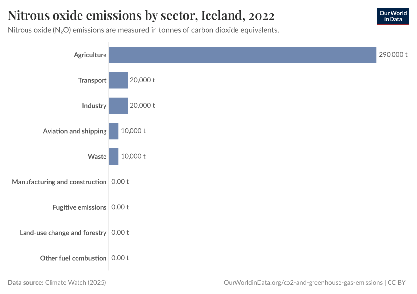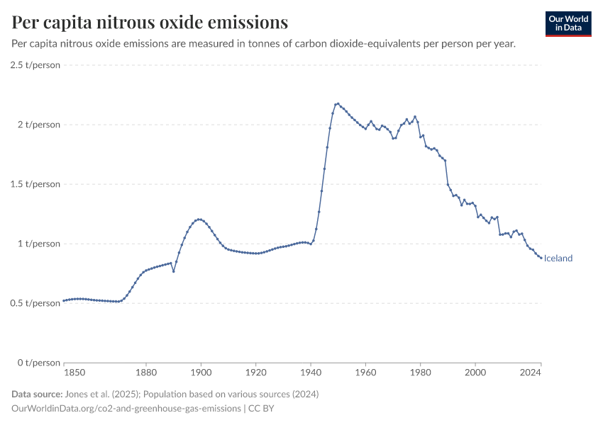 Nitrous oxide: how much does the average person in Iceland emit? Where do emissions come from?
