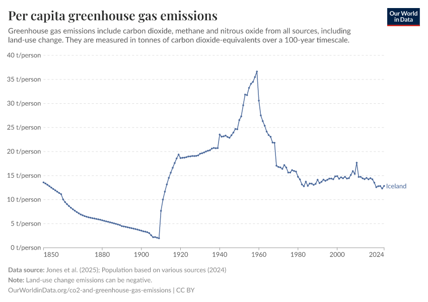 Hannah Ritchie (2025) - “CO₂ and Greenhouse Gas Emissions” Published online at OurWorldinData.org. Retrieved from: 'https://ourworldindata.org/profile/co2/iceland' [Online Resource]BibTeX citation