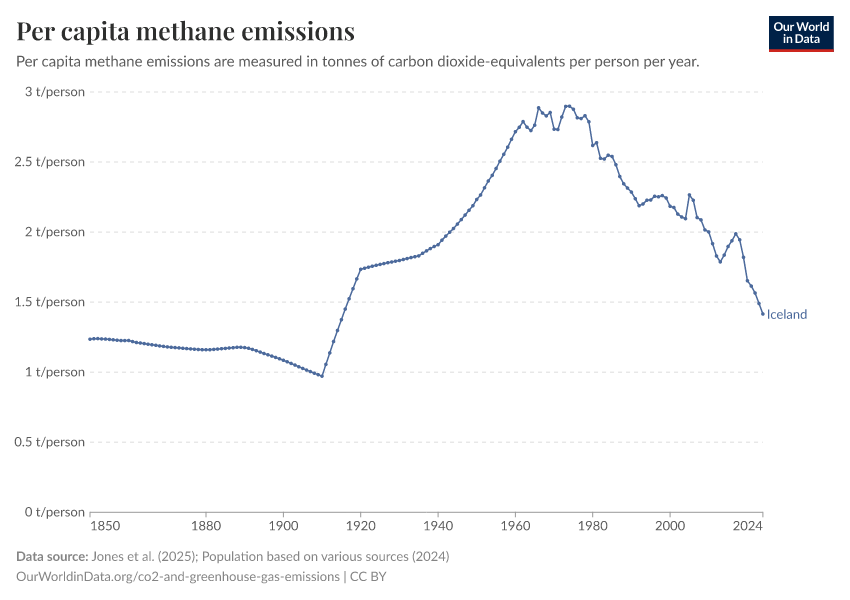 Methane: how much does the average person in Iceland emit? Where do emissions come from?