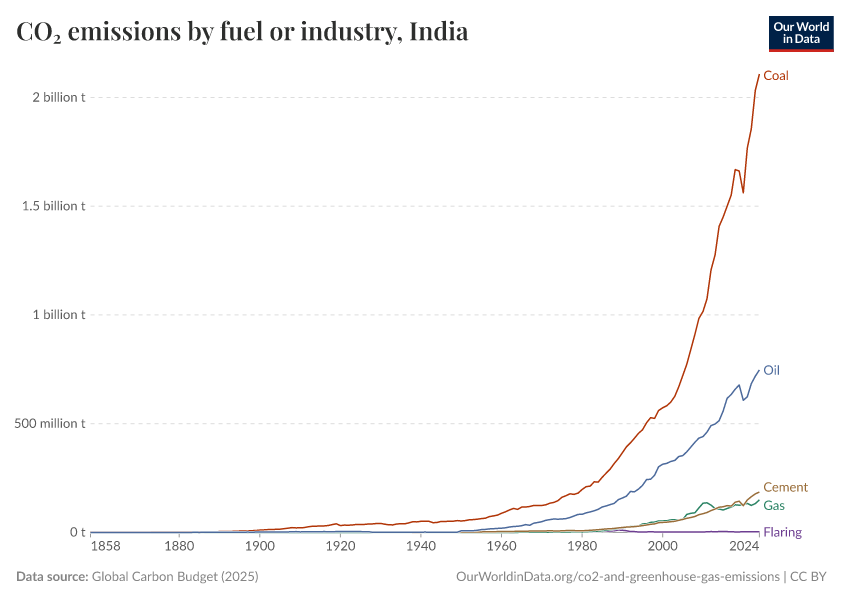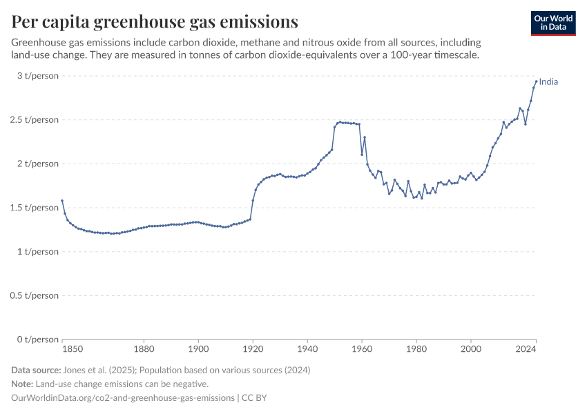 Hannah Ritchie (2025) - “CO₂ and Greenhouse Gas Emissions” Published online at OurWorldinData.org. Retrieved from: 'https://ourworldindata.org/profile/co2/india' [Online Resource]BibTeX citation