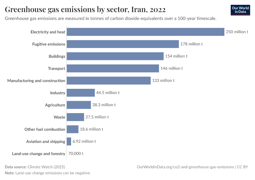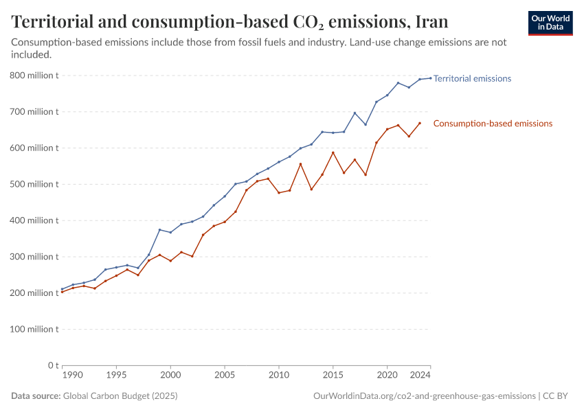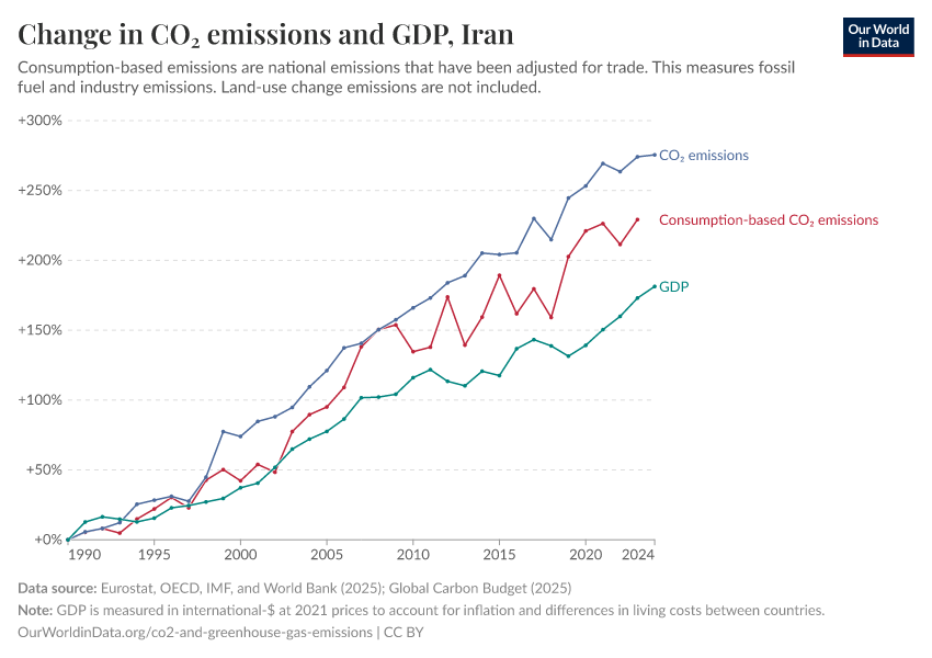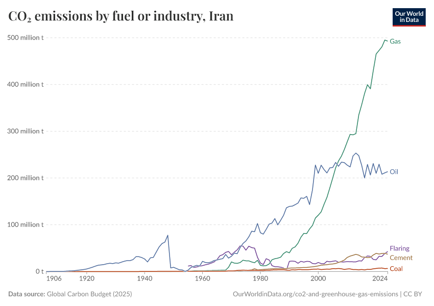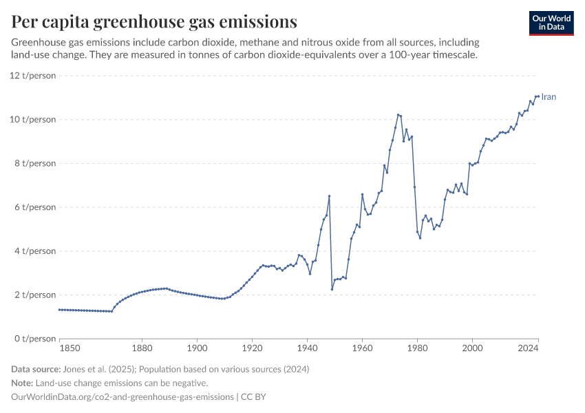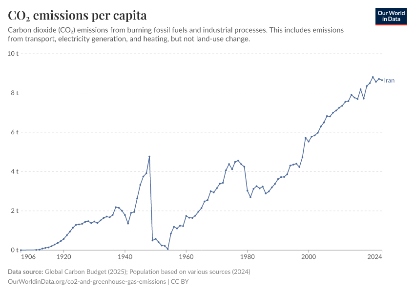 Hannah Ritchie (2025) - “CO₂ and Greenhouse Gas Emissions” Published online at OurWorldinData.org. Retrieved from: 'https://ourworldindata.org/profile/co2/iran' [Online Resource]BibTeX citation