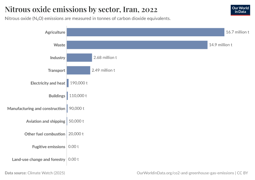 Nitrous oxide: how much does the average person in Iran emit? Where do emissions come from?