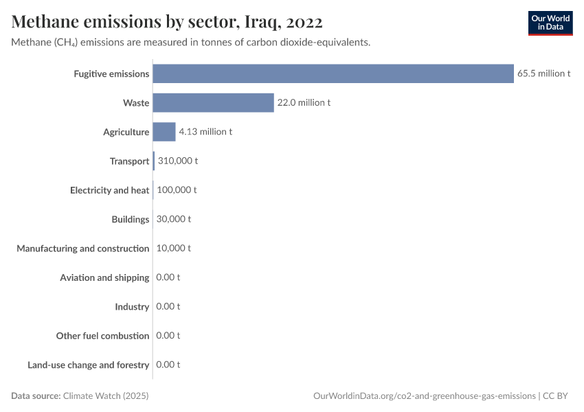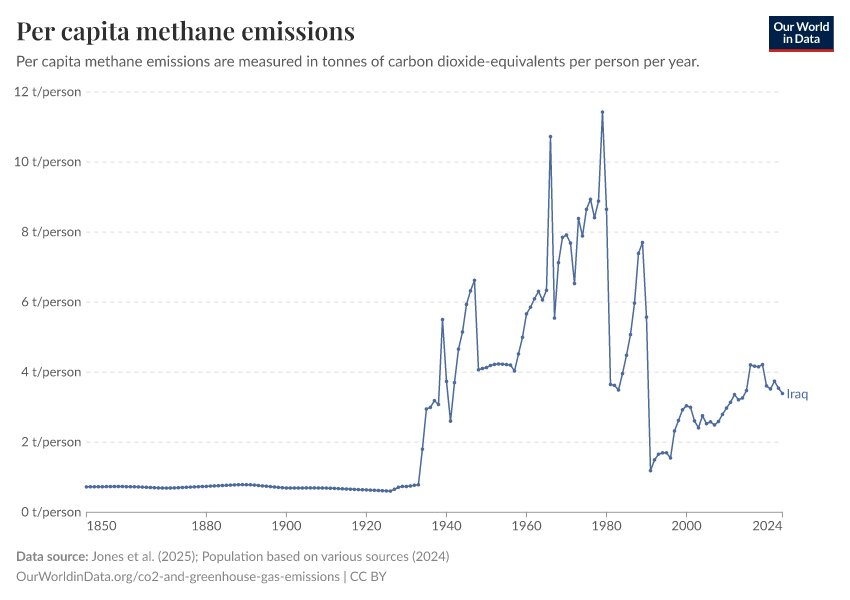 Methane: how much does the average person in Iraq emit? Where do emissions come from?