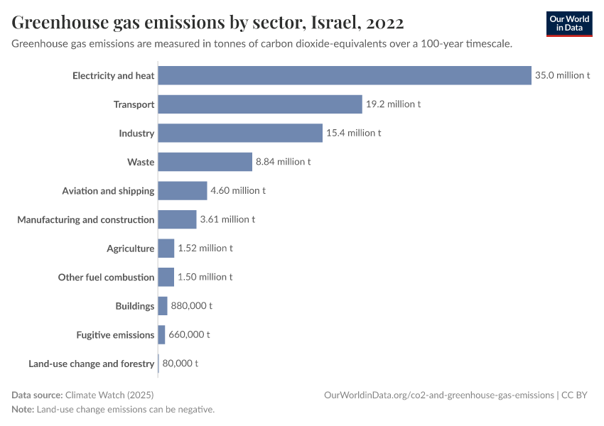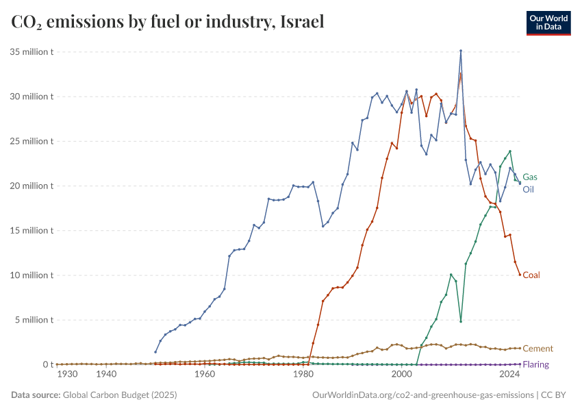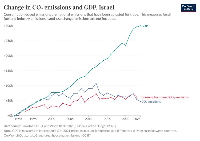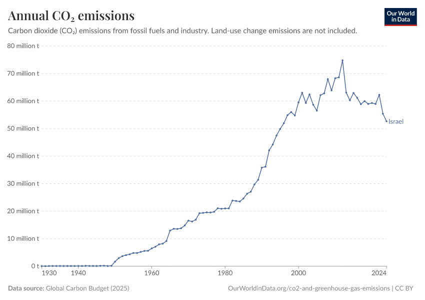 Hannah Ritchie (2025) - “CO₂ and Greenhouse Gas Emissions” Published online at OurWorldinData.org. Retrieved from: 'https://ourworldindata.org/profile/co2/israel' [Online Resource]BibTeX citation