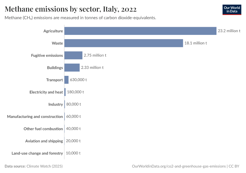 Methane: how much does the average person in Italy emit? Where do emissions come from?
