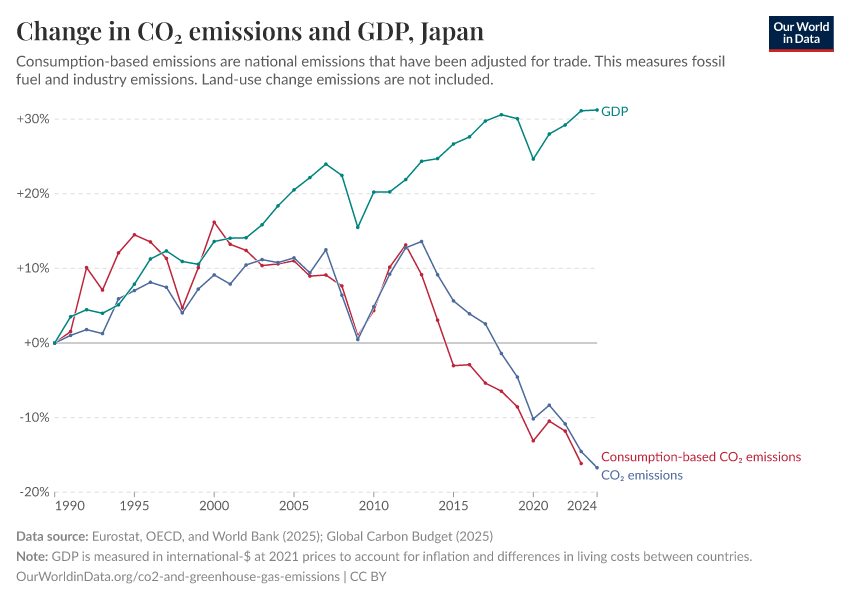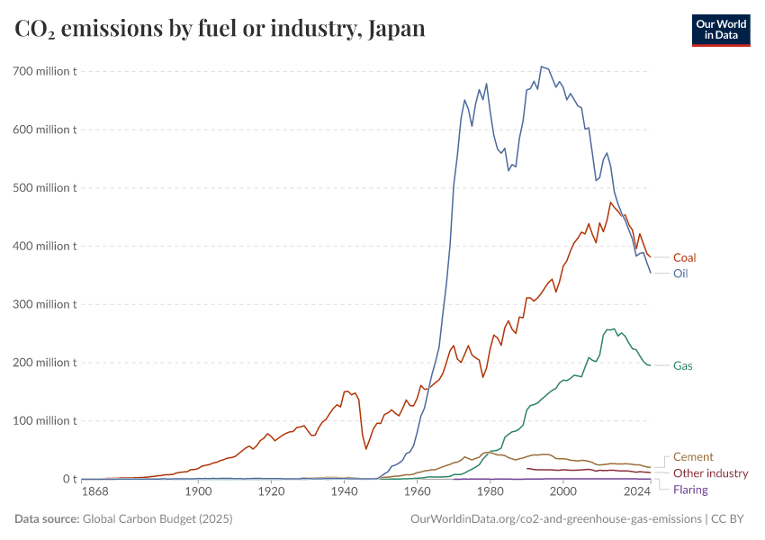 Hannah Ritchie (2025) - “CO₂ and Greenhouse Gas Emissions” Published online at OurWorldinData.org. Retrieved from: 'https://ourworldindata.org/profile/co2/japan' [Online Resource]BibTeX citation