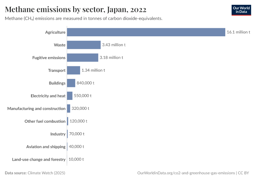 Methane: how much does the average person in Japan emit? Where do emissions come from?