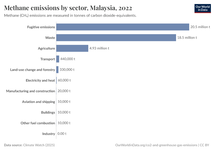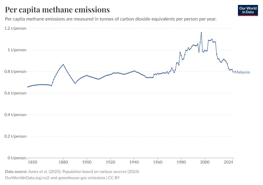 Methane: how much does the average person in Malaysia emit? Where do emissions come from?