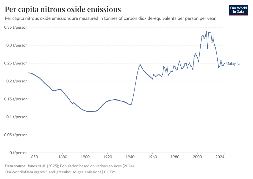 Nitrous oxide: how much does the average person in Malaysia emit? Where do emissions come from?