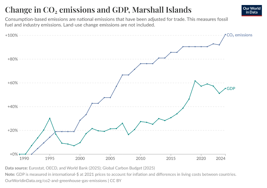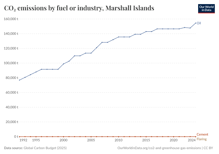 Hannah Ritchie (2025) - “CO₂ and Greenhouse Gas Emissions” Published online at OurWorldinData.org. Retrieved from: 'https://ourworldindata.org/profile/co2/marshall-islands' [Online Resource]BibTeX citation