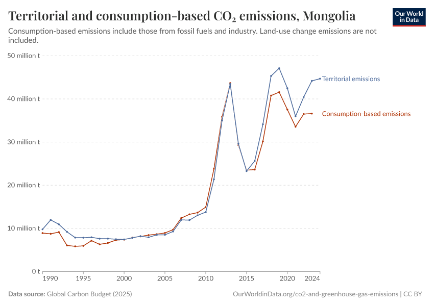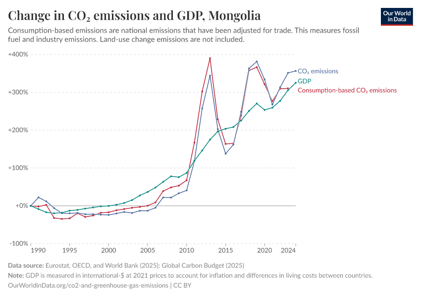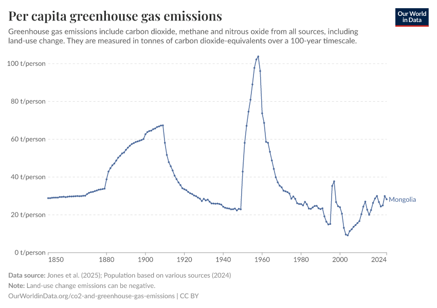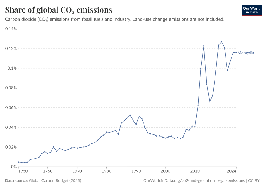 Hannah Ritchie (2025) - “CO₂ and Greenhouse Gas Emissions” Published online at OurWorldinData.org. Retrieved from: 'https://ourworldindata.org/profile/co2/mongolia' [Online Resource]BibTeX citation