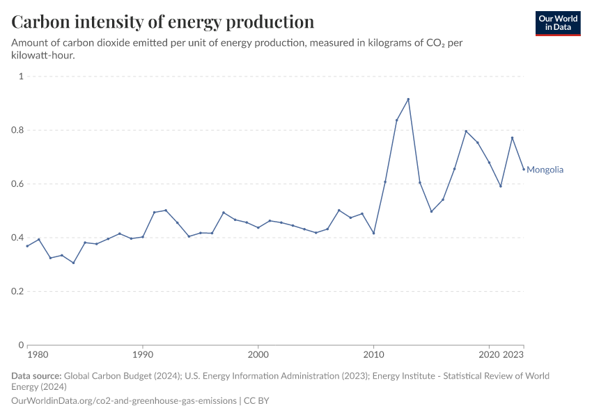 Carbon intensity: how much carbon does Mongolia emit per unit of energy?