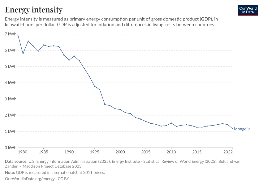 Energy intensity: how much energy does Mongolia use per unit of GDP?