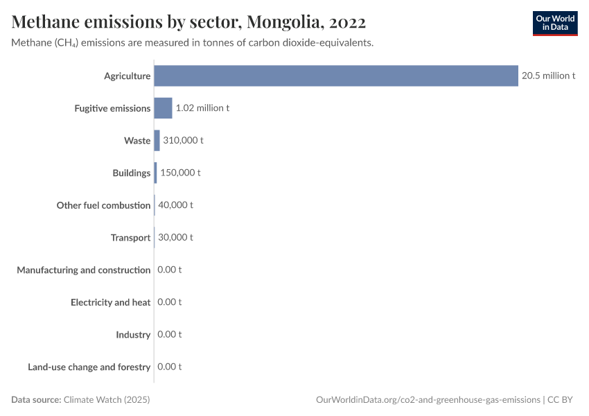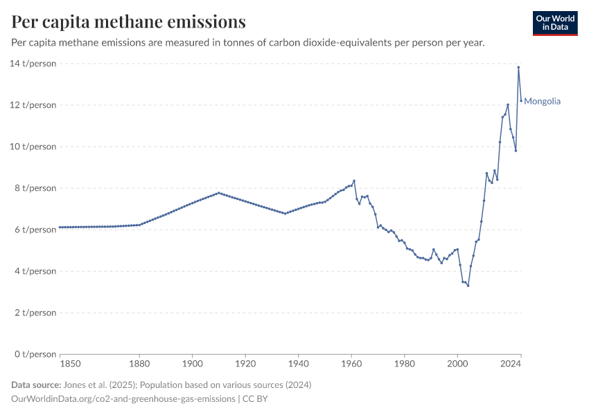 Methane: how much does the average person in Mongolia emit? Where do emissions come from?