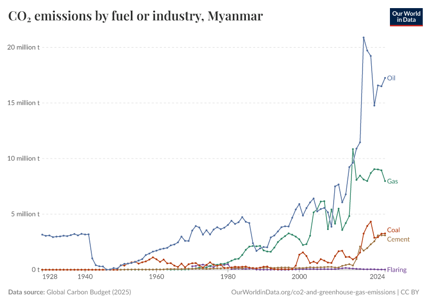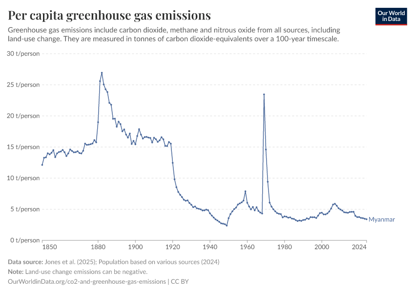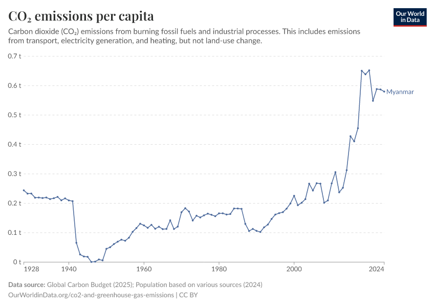Hannah Ritchie (2025) - “CO₂ and Greenhouse Gas Emissions” Published online at OurWorldinData.org. Retrieved from: 'https://ourworldindata.org/profile/co2/myanmar' [Online Resource]BibTeX citation