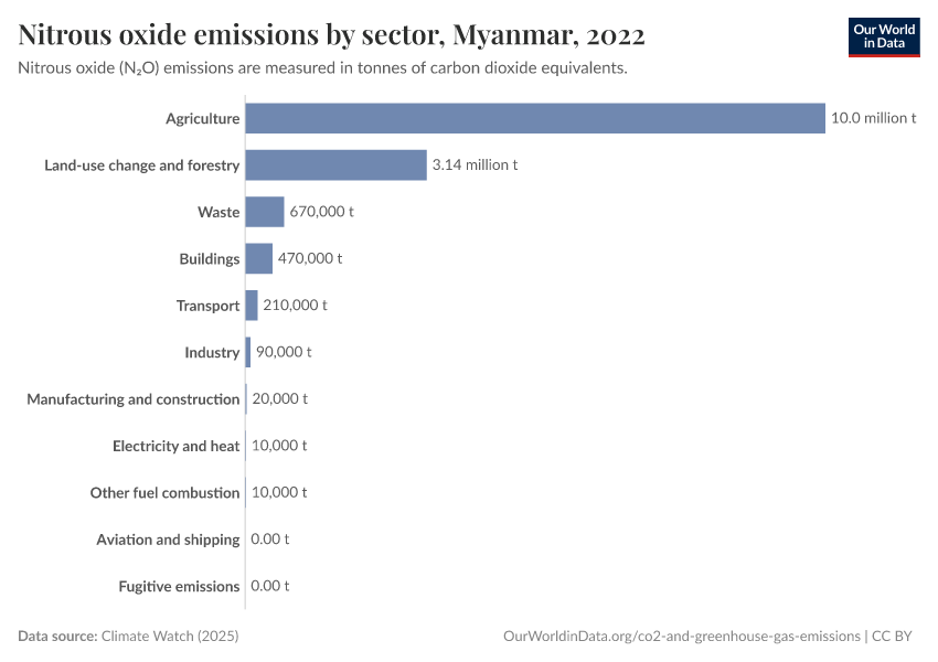 Nitrous oxide: how much does the average person in Myanmar emit? Where do emissions come from?
