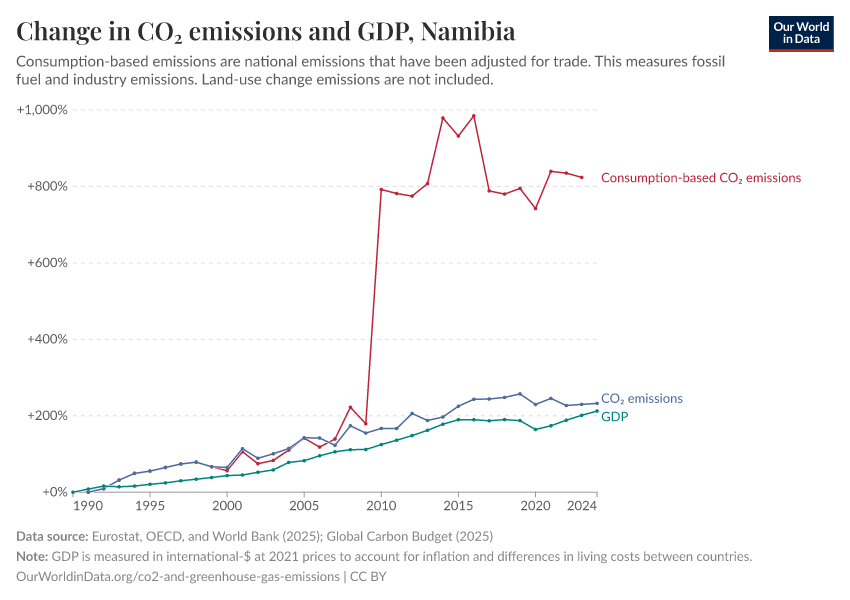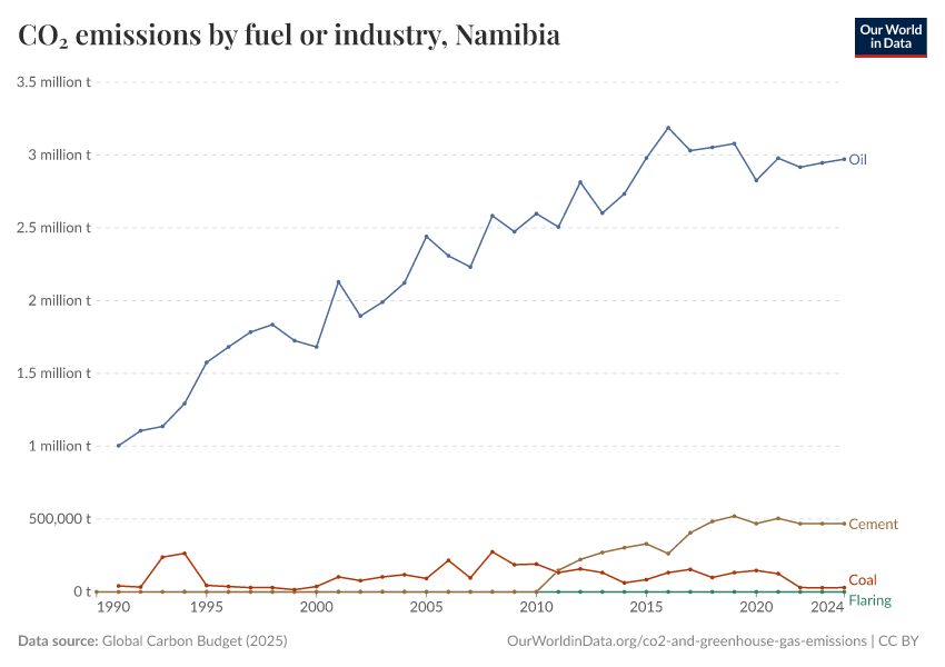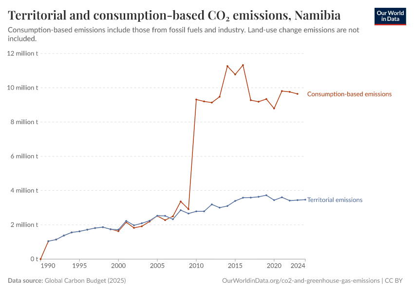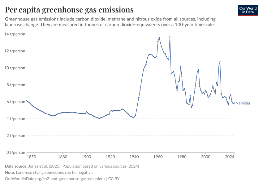 Hannah Ritchie (2025) - “CO₂ and Greenhouse Gas Emissions” Published online at OurWorldinData.org. Retrieved from: 'https://ourworldindata.org/profile/co2/namibia' [Online Resource]BibTeX citation