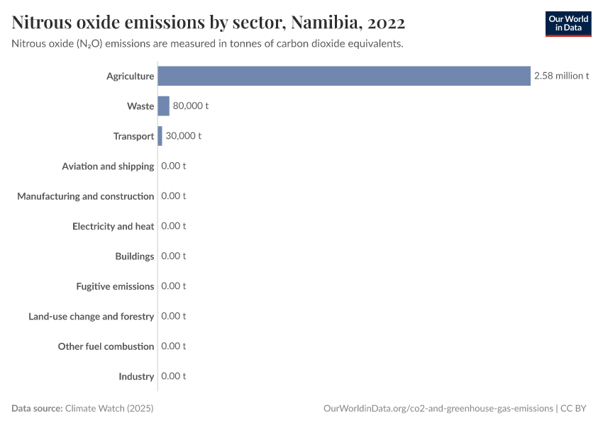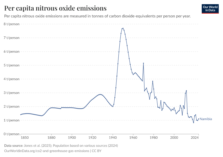Nitrous oxide: how much does the average person in Namibia emit? Where do emissions come from?