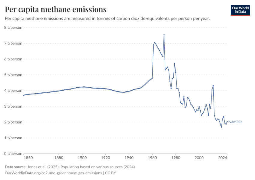 Methane: how much does the average person in Namibia emit? Where do emissions come from?