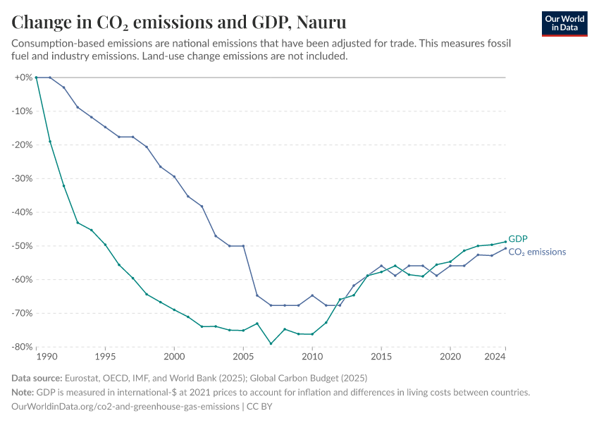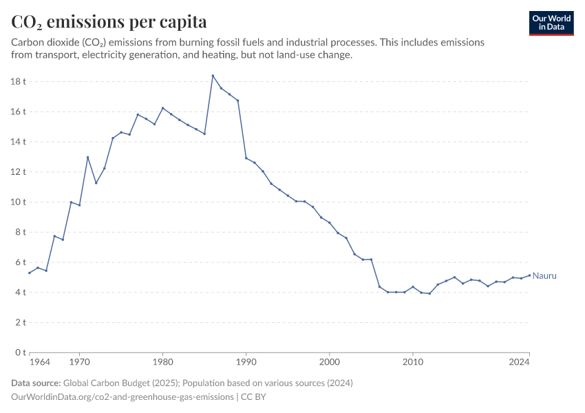 Hannah Ritchie (2025) - “CO₂ and Greenhouse Gas Emissions” Published online at OurWorldinData.org. Retrieved from: 'https://ourworldindata.org/profile/co2/nauru' [Online Resource]BibTeX citation
